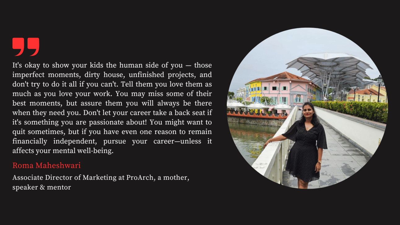 In today’s edition, I share my conversation with Roma Maheshwari, Associate Director of Marketing at ProArch, mother to Seerat and a fitness enthusiast. Roma is quite vocal about women’s issues and how women drop out of the workforce due to a lack of support, and she shares her opinions on LinkedIn.